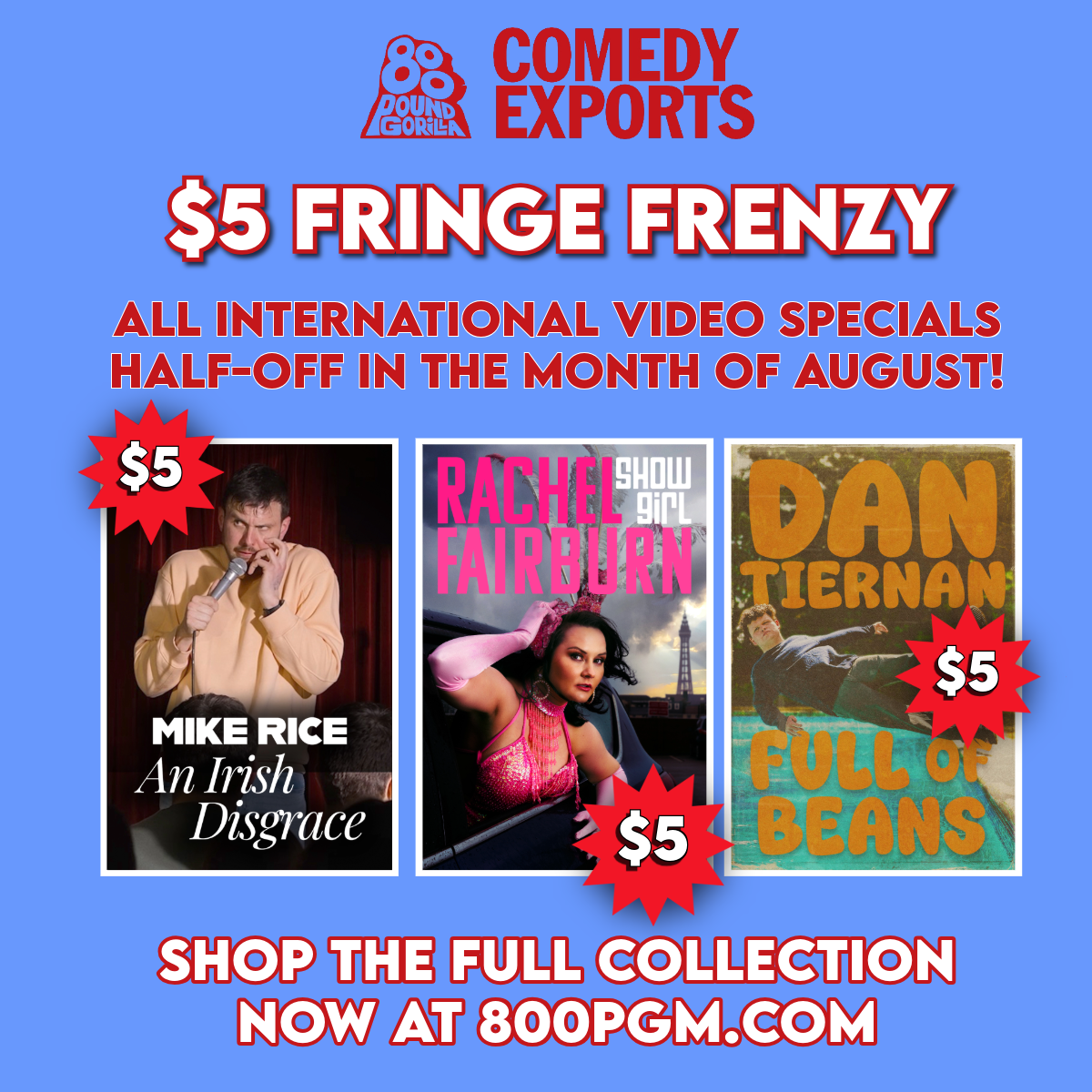 The Drop Dead Years Are Here | | Bill Burr's album is out now | | Listen wherever you stream your comedy. | | Enter here for a chance to win a SIGNED Bill Burr album poster. | | Paul Foot's Fringe fest hit is available for early access. Watch Dissolve now and find out what Jesus would have been like if he were a plumber. | | Comedy From Around The World | | Suraj Kolarkar, seen in Netflix's God's Favorite Idiot, brings the laughs in his special about culture shock, racism, and his ice cream obsession. | | America's Got Talent's Howie Mandel joins the Just For Laughs festival to host an extravaganza featuring Roy Woof Jr., Maz Jobrani, and more. | | America's Got Talent's Howie Mandel join the Just For Laughs festival to host an extravaganza featuring Roy Woof Jr., Maz Jobrani, and more. | | Lock In On International Laughs | | Bring the Edinburgh Fringe fest to YOU and get half-off international specials for the month of August. | | Find out why Sarah's called "The Cake Pigeon"... | | Have you binged Leanne Morgan's Netflix series yet? We sure have. If you're left wanting more of that classic Leanne charm, check out these six comics who we think you'll like. | | Danny Thomas pays homage to the burlesque shows of his childhood with guest stars Cyd Charisse, Tennessee Ernie Ford, Nanette Fabray and Phil Silvers. This burlesque comedy show has a little something for everyone in the family | | No longer want to receive these emails? Unsubscribe. 800 Pound Gorilla Media 2515 Cruzen Street Nashville, Tennessee 37211 | | | | |